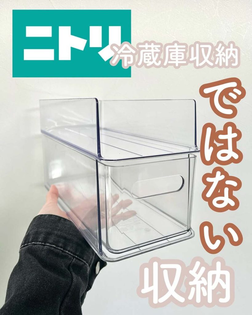 こちらは冷蔵庫の中を整える、透明のラックとトレー。中身が見えるという利点を活かして、コスメ収納に活用しているアイディアです。SサイズとMサイズ、浅型と深型があり、積み重ねても使えます。