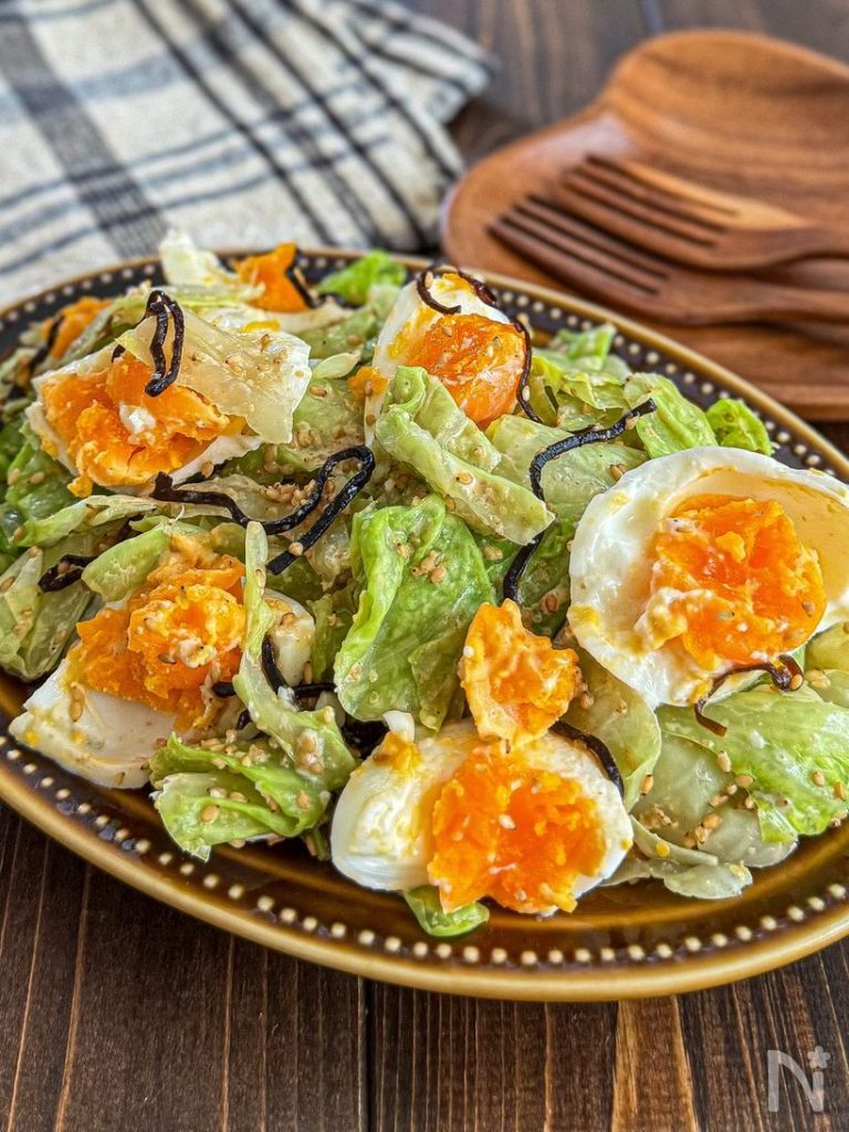 キャベツと半熟卵の《塩昆布♡ごまマヨサラダ》 | レシピサイトNadia