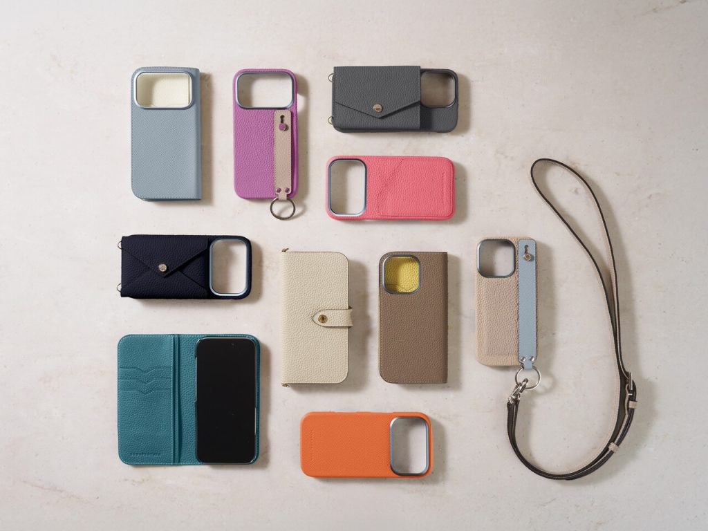 ケースとポーチ、ストラップは好きな色を選ぶことで、自分らしくカスタマイズできます。iPhone 17のほか、Pro、Pro Max、Airのサイズあり。