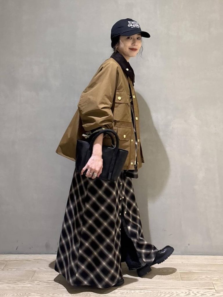 チェックシャツワンピは可愛いけれど、時に幼く見えがち。そこで効かせたいのが、メンズライクなブルゾンです。キャップや厚底シューズを合わせれば甘さを中和しつつ、都会的なムードに仕上がります。秋らしいカラーリングで大人の遊び心を加えて。