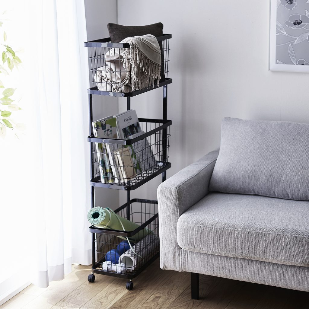 ランドリーワゴンは、「2段」と「3段」の2種類。奥行は2段で約24cm、3段で約24.2cmと奥のスキマまで活用できるから、洗濯機横の空いたスペースに縦置きで使ったり、壁沿いに置いてもOKです。
