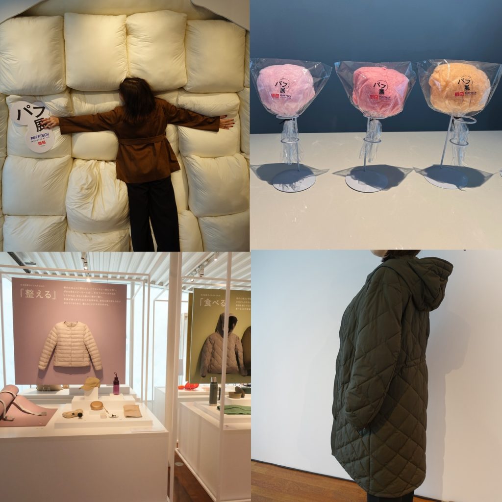 最後のエリアでは、“衣備え”を軸にしたネオ四季ライフのヒントを紹介。「整える」「食べる」「集まる」「浸る」の4つのテーマごとに、軽くて暖かいパフテックを中心とした快適アイテムが並びます。ファッションだけでなく、暮らしの中のあたたかさを提案しているのが印象的でした。