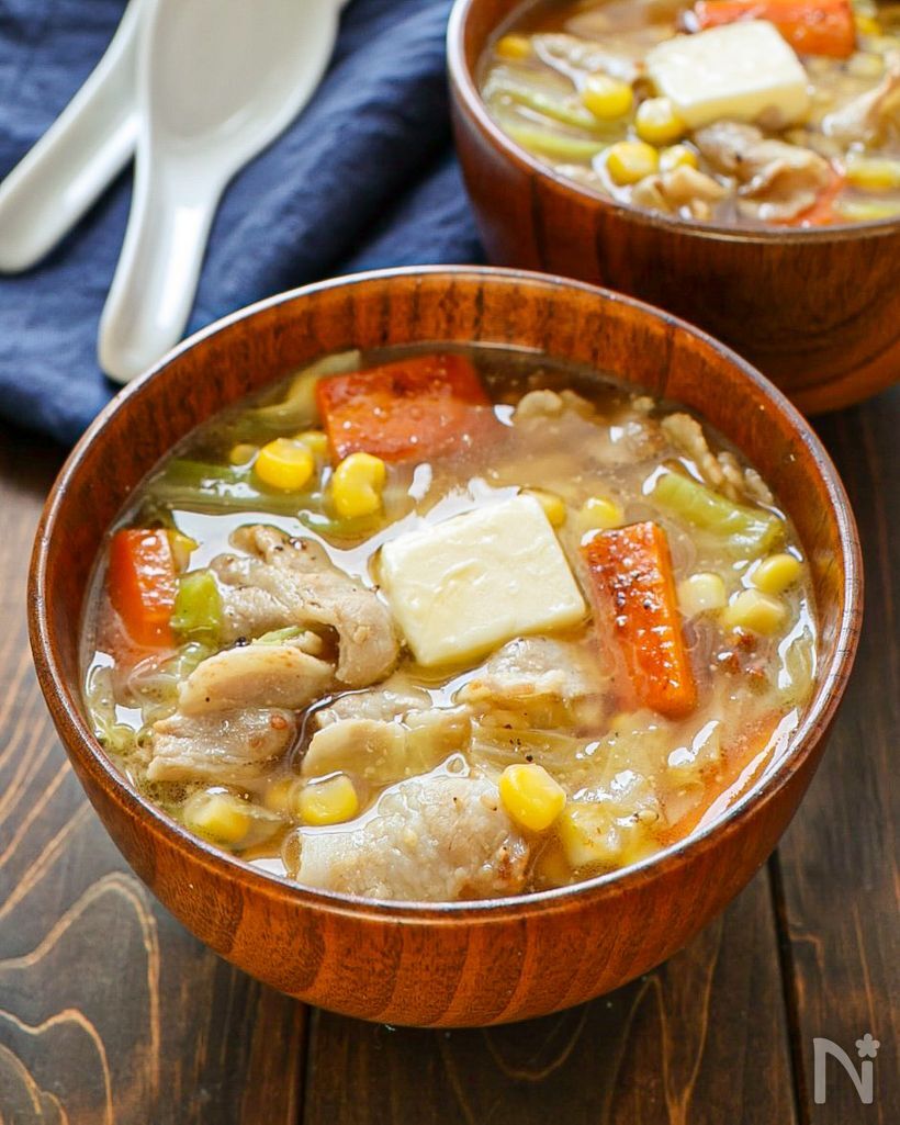 2. 反則級にうまい!豚バラキャベツの味噌バターコーンスープ