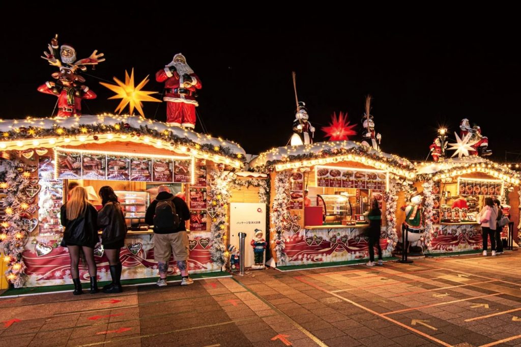 会場には、今年最大規模となる15棟のヨーロッパ式ヒュッテが登場。クリスマスマーケットの本場であるドイツから直輸入した人形やサンタも飾られており、会場全体がクリスマスムード一色です。