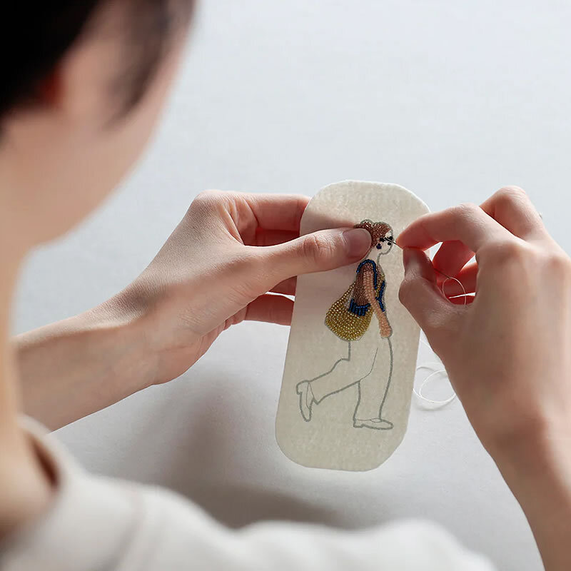 SNSで「かわいい!」と話題の広島の老舗ビーズメーカー"MIYUKI"の刺しゅうキットです。厚手のフェルト生地に塗り絵をしていくようにビーズを縫い付けていきます。出来上がるとバッグやスカーフにつける大きめのブローチに。オシャレガールがモチーフという点も女性の心をグッと掴みますね!