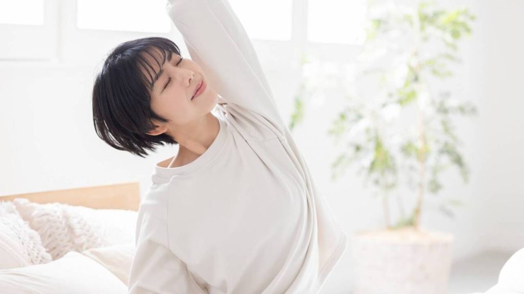 日頃の工夫も重要ですが、朝起きたときのストレッチも欠かせません。夜寝ている間に凝り固まった体をほぐすとともに、血行の流れをよくする、目覚めのスイッチを入れるといったことが期待できます。寝ぼけまなこでも行えますので、ぜひ明日の朝からやってみましょう!