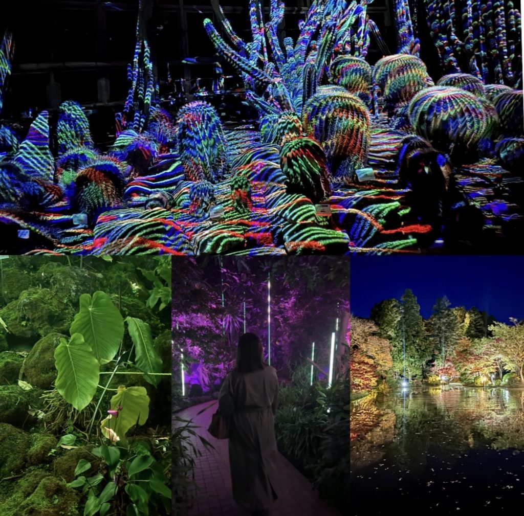 幻想的な光をまとった植物たちに囲まれながら温室を巡る時間は、まるで現実からそっと切り離されたような特別な感覚がありました。最先端のライティングが葉の一枚一枚を照らし、穏やかな音のレイヤーが重なっていくことで、自然とテクノロジーが美しく溶け合う没入空間が広がります。