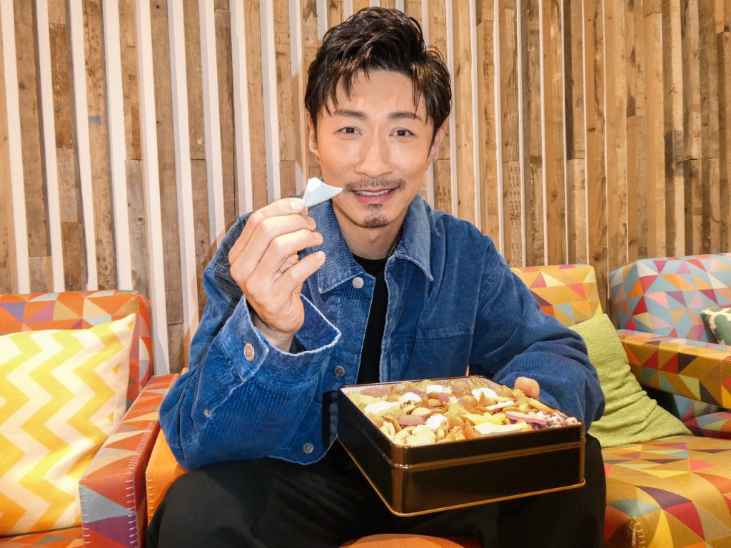 日本の四季を表現した美しい缶を手に、「きれいですね〜」と目を細めるMAKIDAIさん。「やっぱり富士山が気になりますよね」と話しながら、和三盆の富士山をパクリ。「これはなんだろう?」「金平糖なんて、久々に食べるなぁ」と、彩り豊かなお菓子に会話も自然と弾みます。