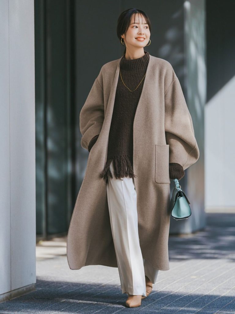 ⑩まろやかブラウンで繋ぐ、冬のIラインスタイル