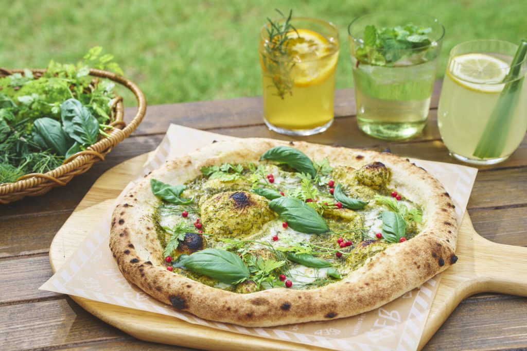 心地よい気候のなかだとよりおいしい、ハーブを使ったフードやドリンクが食べられます。ハーブを贅沢に使ったピッツァや、爽やかなハーブサワーが登場。さらに、デザートにはハーブの風味がアクセントのジェラートを用意しています。朝食のドリンクでは、期間限定で香り豊かなハーブウォーターも。