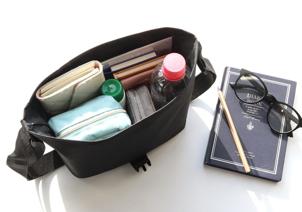 コンパクトな見た目ながら、収納力も優秀。500mLのペットボトルや長財布など、お出かけに欠かせないアイテムがしっかり収まります。