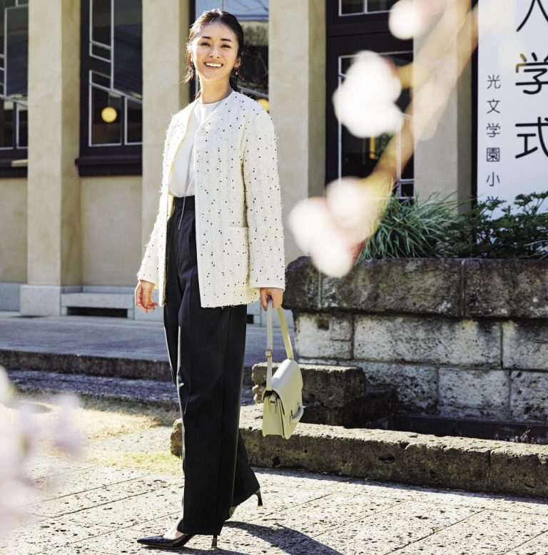 トップスは、ハイウエストパンツにインすることで足長に見せられます。