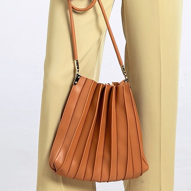 トレンド感たっぷりの「Rewde(ルゥデ)」のプリーツバッグは、キャメルのプリーツバッグが◎です。
