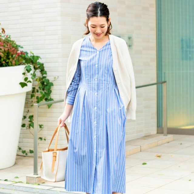 リラックスムードたっぷりなシャツワンピは、サイドがザックリと空いていてスタイリッシュ。大人っぽく着こなせるのでアラフォー女性にもピッタリ。一枚あるだけで、ロングシーズン幅広い着こなしを楽しめます。