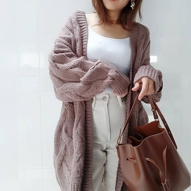 ゆる感で酔わせて♡ざっくり編みが可愛いローゲージニットコーデ