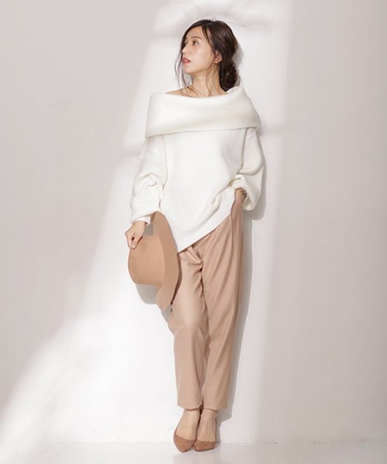 コートの下は色っぽく。鎖骨見せニットで上品レディに♡