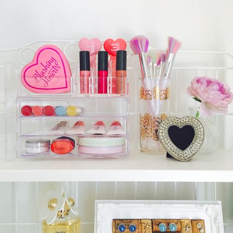 まるでデパートのショーケース♡100均クリアケースで華やかコスメ収納