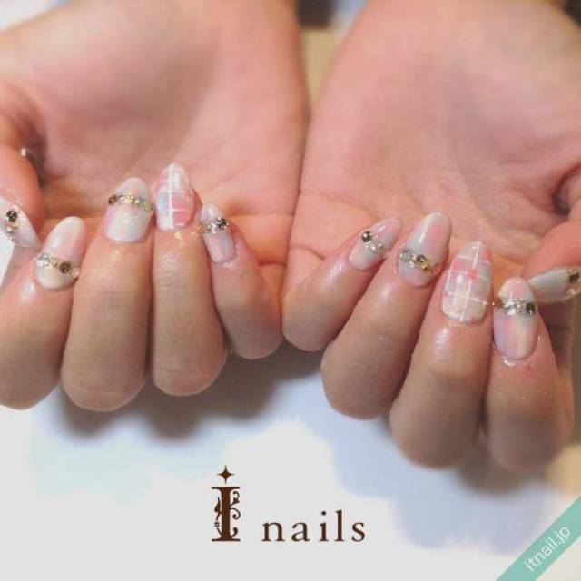 大人なかわいさがツボ。お上品チェックネイルの描き方とデザイン集
