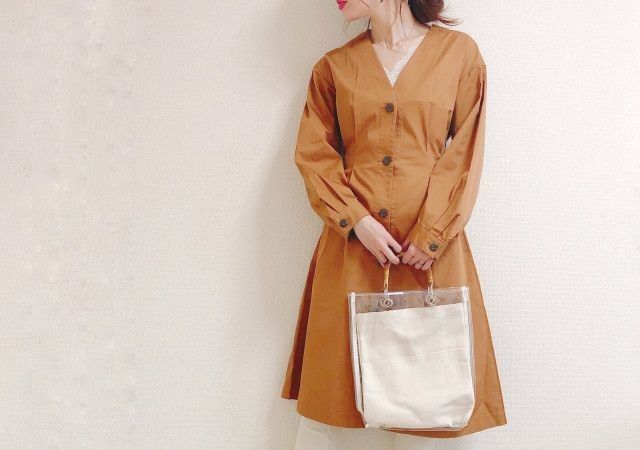 GUノーカラーコート、優秀すぎでは? 羽織ってもワンピとして着ても可愛い。
