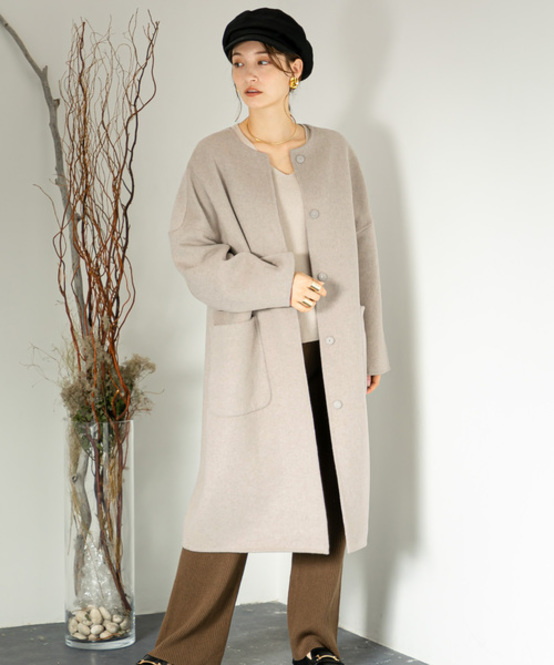 Vネック&丸首♡人気の「ノーカラーコート」の着こなし徹底解説!