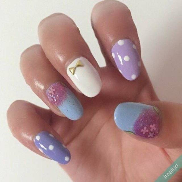 パープル×ホワイトネイルをスイートカジュアルにアレンジする方法