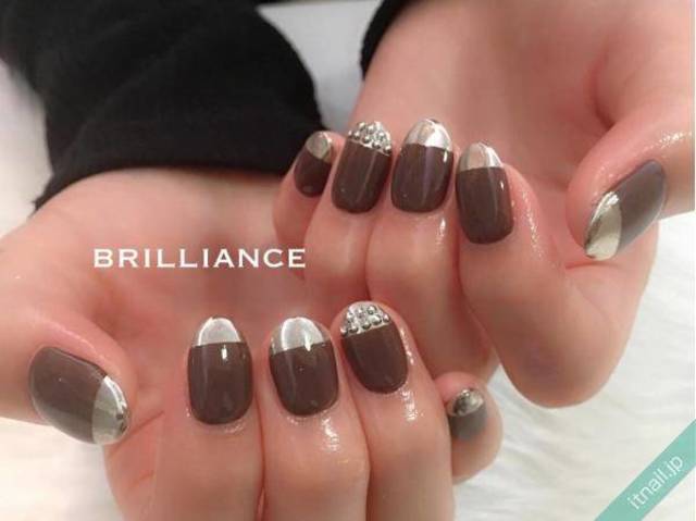 ブラウン×ミラーネイルで大人カジュアルな指先に
