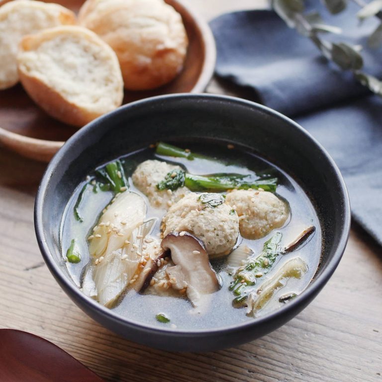 [365日のパンとスープ]春菊と鶏つくねの中華スープ