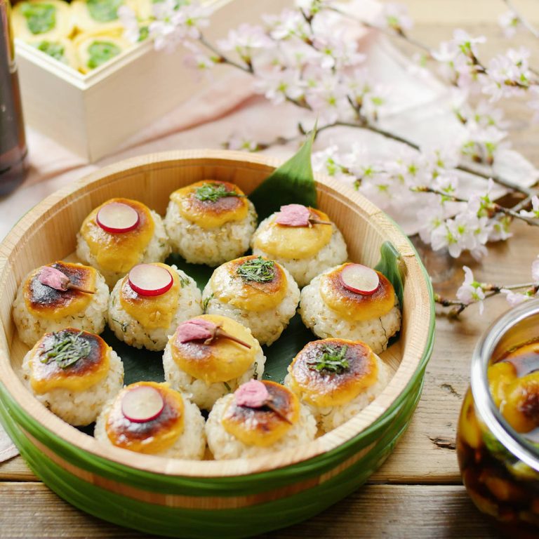 [飲んべえさんのお花見弁当]トースターでこんがり♪ みそチーズ焼きおにぎり
