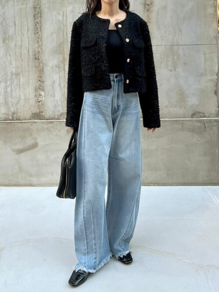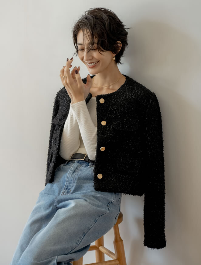リエディの“ボアリボン金釦ノーカラーツイードジャケット”が盛れる!大人コーデ7選