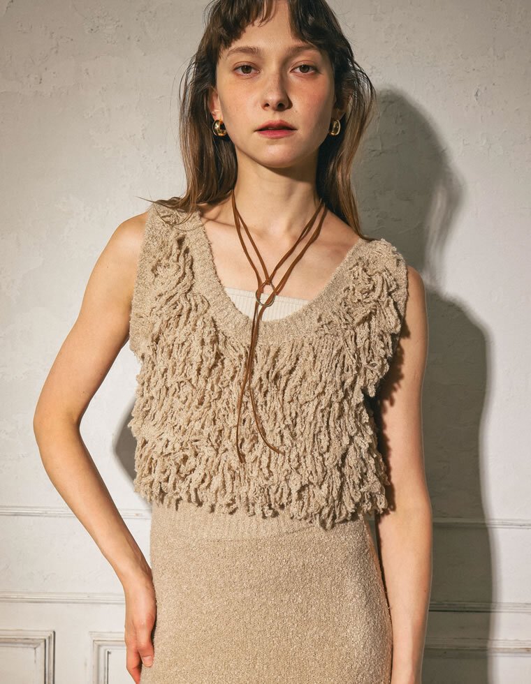 「Re:EDIT」トレンドのループフリンジが目を惹くベスト&ナロースカートが登場!セットアップで大人可愛く仕上げる♡