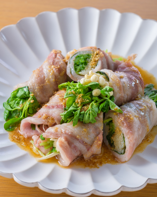豚バラの豆苗しそ巻き