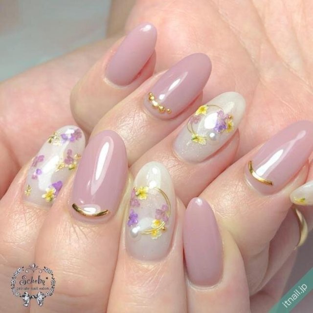 [春の押し花ネイル]人気カラー別におすすめデザインをご紹介♡